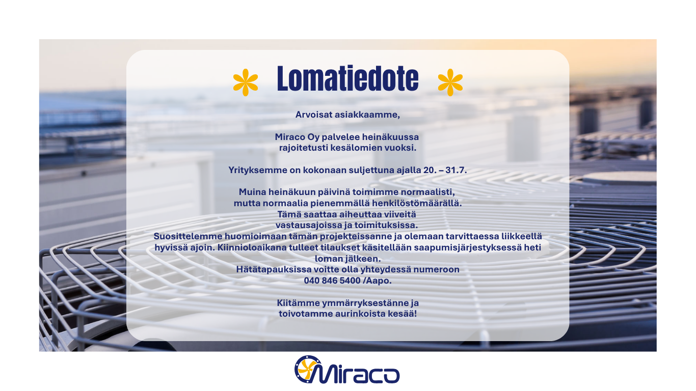 Yhteenvetona voidaan todeta, että Miraco Oy on luotettava ja kokenut kumppani teollisuuden ilmanvaihto- ja jäähdytysratkaisuissa, tarjoten räätälöityjä tuotteita ja palveluita asiakkaidensa tarpeisiin.